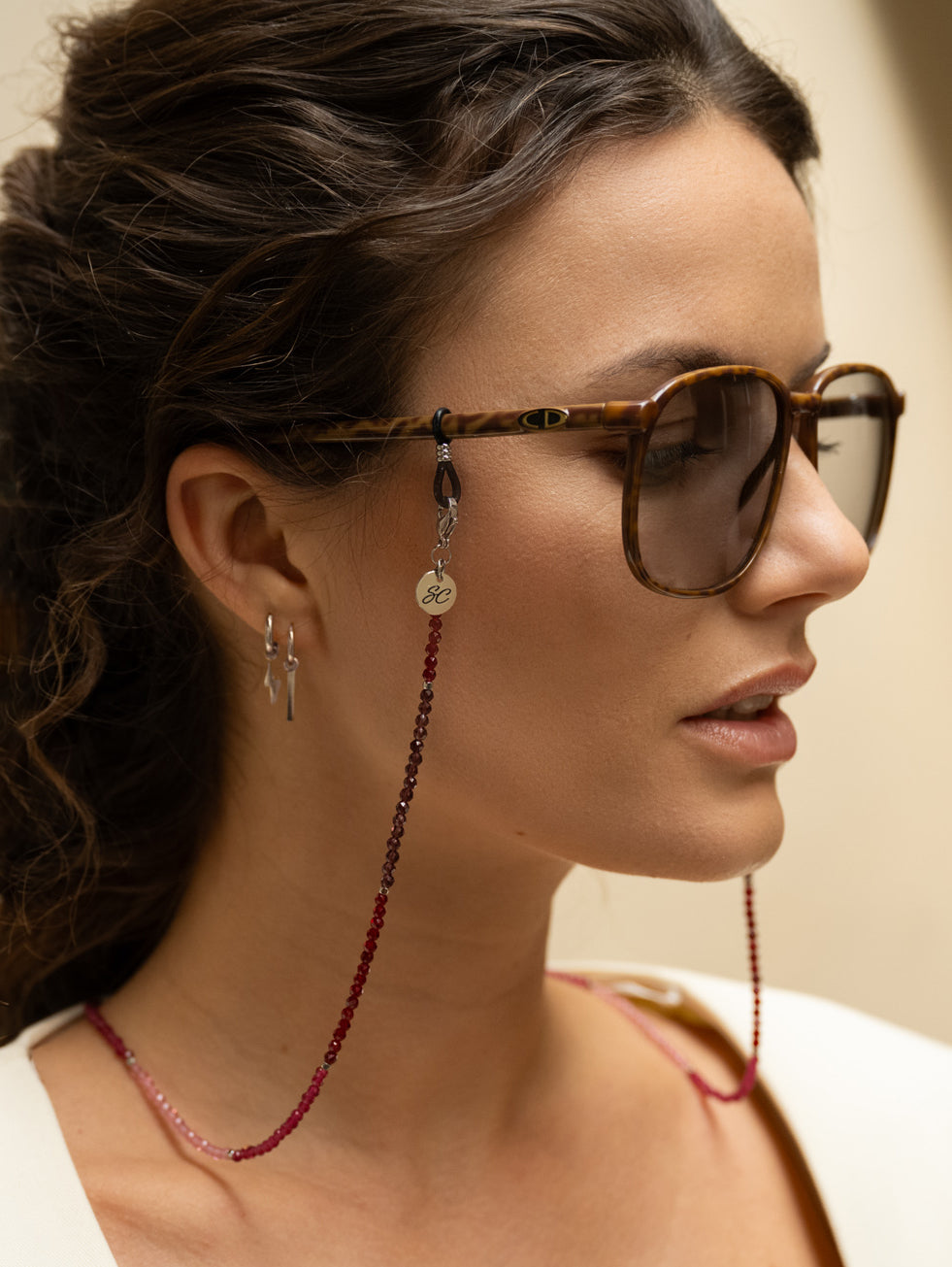 This Imani sunglass chain treasure is inspired by the Arabic cultures. The various shades of purple in the Sunny Cord will bring a warm, sparkling touch to your outfit. Whether you wear it on your glasses or as a bracelet. Imagine wearing this chain while watching the sky turn pink at sunset—it's truly exhilarating just to think about!